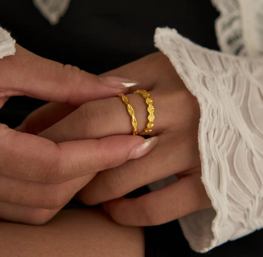 From sculptural domes to zircon sparkle, our rings are made to mix, match, and stack, no fuss, all shine. Each piece is crafted for everyday wear, so you can wash hands, work, and go out without babying your jewelry.